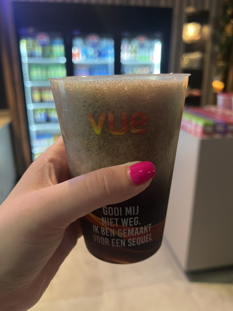 Natuurlijk moesten er eerst snacks gehaald worden! Ik liep eerst met een flesje Ice Tea green in mijn handen, maar toen viel mijn oog op de Frozen Cola apparaten, en daar ben ik echt veel te zwak voor. Ik ben echt dol op dat spul, dus mijn keuze was snel gemaakt. Mijn vriend en ik hebben daarnaast ook nog een grote zoete popcorn gedeeld.